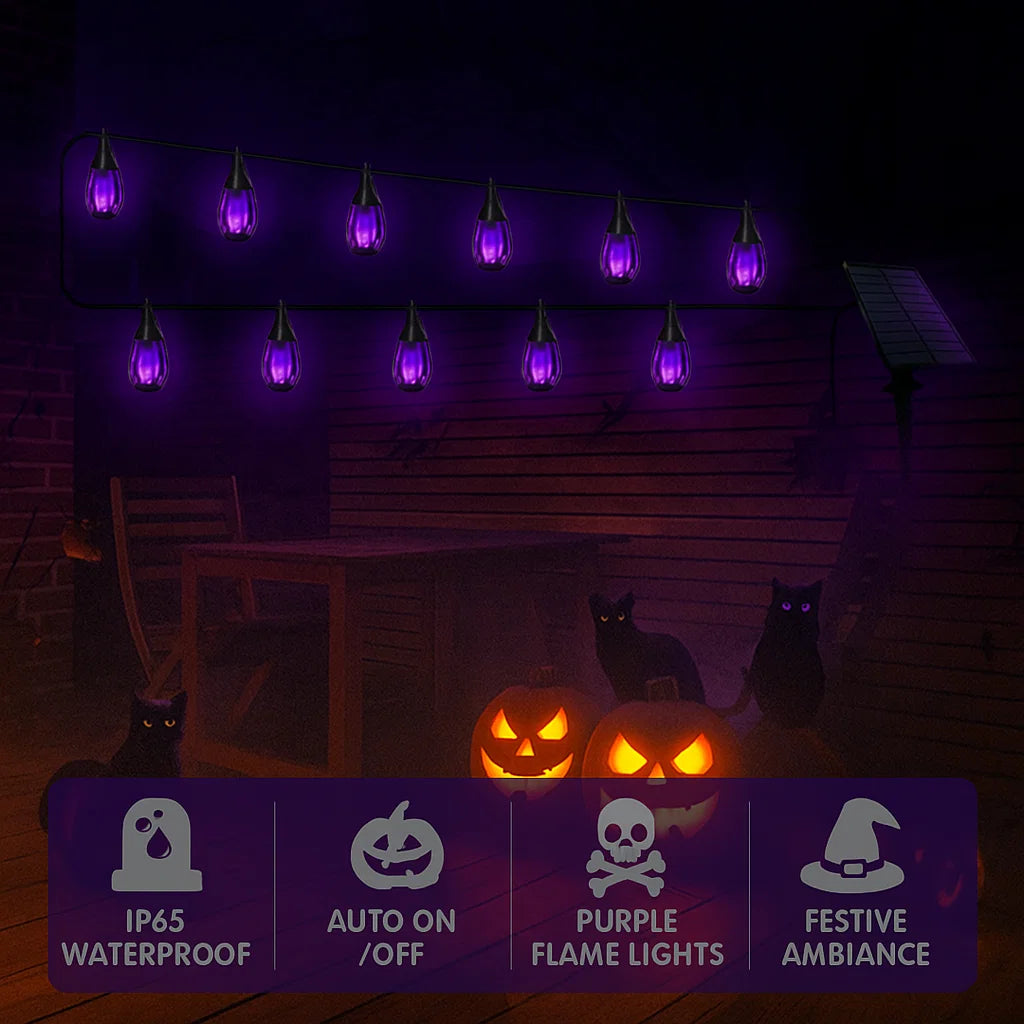 Forget fussy decorations - these purple flame string lights are ready in minutes. Built from durable, weather-resistant materials, they shine night after night without hassle. Whether you’re lighting the path for trick-or-treaters, creating a haunted hangout, or adding eerie charm to your porch, you’ll enjoy an easy setup that makes a big Halloween impression.