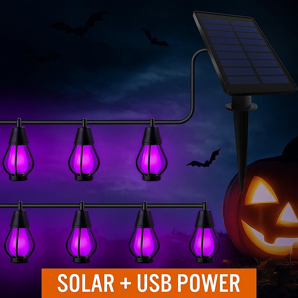 Turn your yard into a scene of eerie enchantment in minutes. These purple flame string lights are easy to set up yet deliver a bold, flickering glow once darkness falls—like ghostly fire dancing in the night. Built with sturdy, weather-resistant materials, they’re designed to shine all season long. Whether for trick-or-treat night, a Halloween party, or simply to spook the neighbors, this glow adds haunting magic without the hassle.