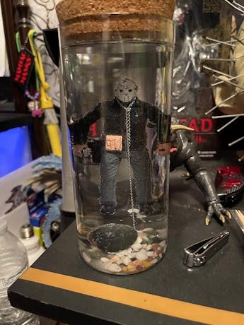 Bring the horror of Crystal Lake home with this terrifyingly unique floating decoration. It’s designed to deliver shivers and suspense wherever you place it.